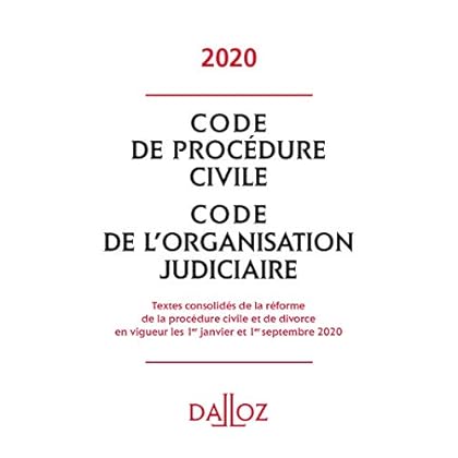 À jour des décrets d'organisation judiciaire d'août et septembre 2019 et des décrets de procédure civile et de divorce de décembre 2019. Le présent ouvrage comprend les textes du code de procédure civile et du code de l’organisation judiciaire.L’ensemble est à jour des lois et décrets publiés au 1er janvier 2020 et notamment :- De la loi du 23 mars 2019 de programmation 2018-2022 et de réforme pour la justice ;- Du décret du 22 juillet 2019 de coordination de la loi du 23 mars 2019 de réforme pour la justice en matière de protection juridique des majeurs, de changement de régime matrimonial, d'actes non contentieux confiés aux notaires et de prorogation de l'attribution provisoire de la jouissance du logement de la famille et mesure relative à la reconnaissance transfrontalière des décisions de protection juridique des majeurs ;- Des décrets et arrêté du 30 août 2019 notamment relatif au nouveau tribunal judiciaire ;- Du décret de décembre 2019 réformant la procédure civile ;- Du décret de décembre 2019 relatif à la procédure applicable aux divorces contentieux et à la séparation de corps ou au divorce par consentement mutuel réalisés selon les modalités de l’article 229-1 du code civil ;- Du décret de décembre 2019 relatif à la mise à disposition du public des décisions des juridictions judiciaires et administratives;- Du décret de décembre 2019 relatif à la procédure accélérée au fond.